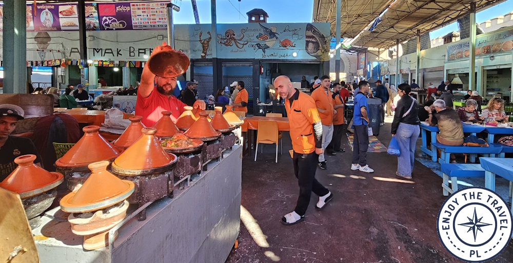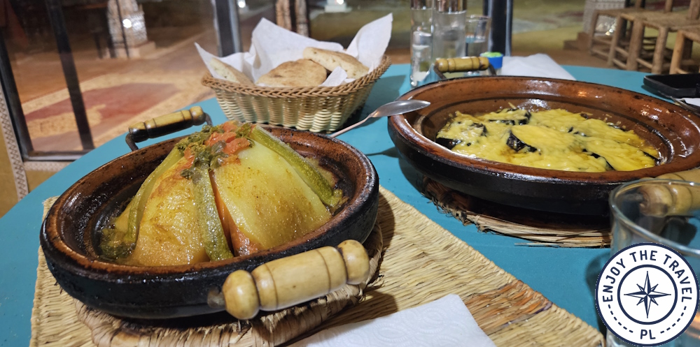 Kuchnia marokańska to jeden z najmocniejszych punktów wyjazdu. Tadżin (Tajin), kuskus, harira, grillowane mięsa i świeże soki (tu warto zachować ostrożność – my nie zdecydowaliśmy się ich pić) są dostępne niemal na każdym kroku. Jedzenie uliczne w popularnych miejscach jest bezpieczne, o ile wybierasz lokale z dużym ruchem i świeżo przygotowywanymi potrawami. My jedliśmy w różnych miejscach i za każdym razem trafialiśmy na smaczne potrawy. Unikaliśmy tylko „ryzykownych” dań i surowych warzyw (nie wiadomo jaką wodą je myto) i owoców, które można spożywać ze skórką. Za to chętnie jedliśmy mandarynki czy lokalne mini banany.